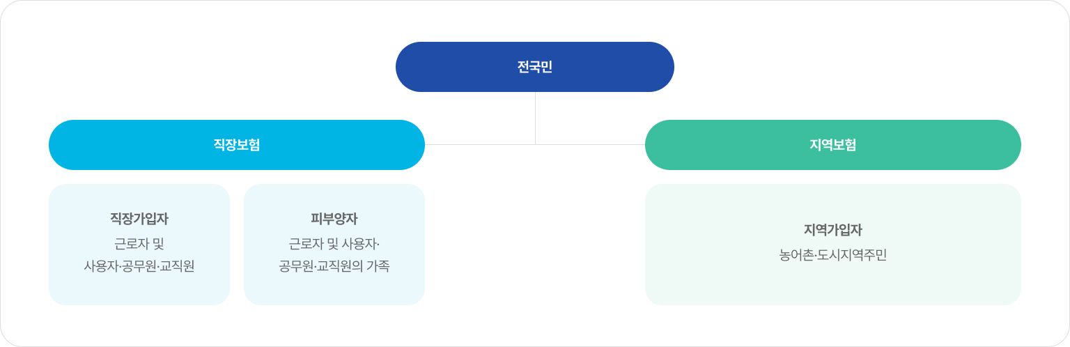 • 국내에 거주하는 국민 → 가입자 또는 피부양자(법 제5조)